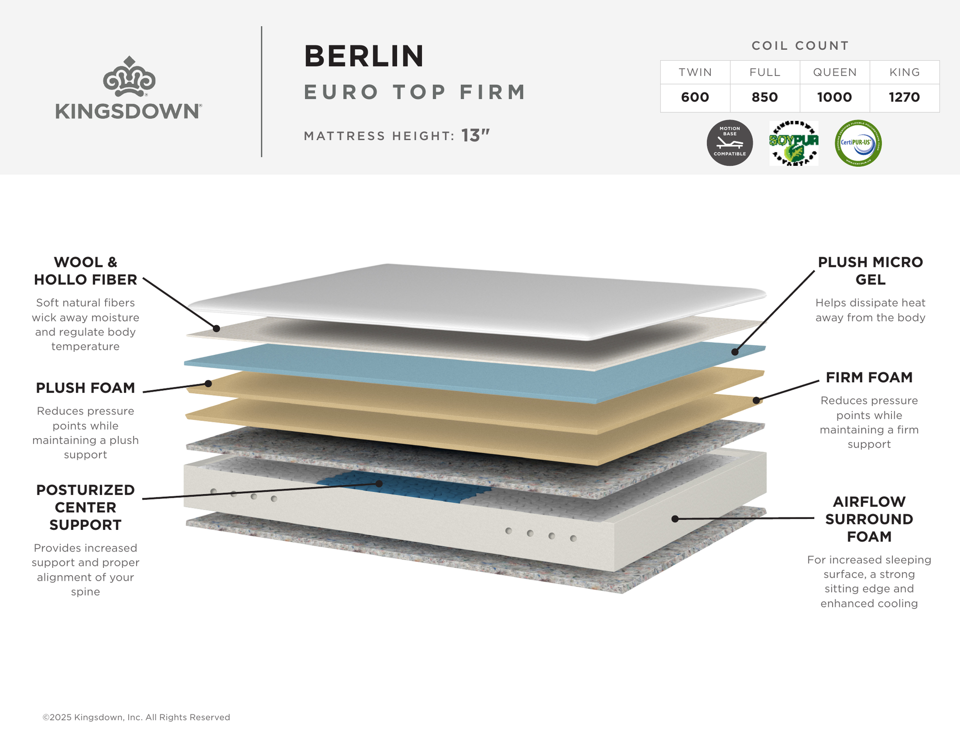 Key Features of Kingsdown Berlin Eurotop Firm Mattress:
