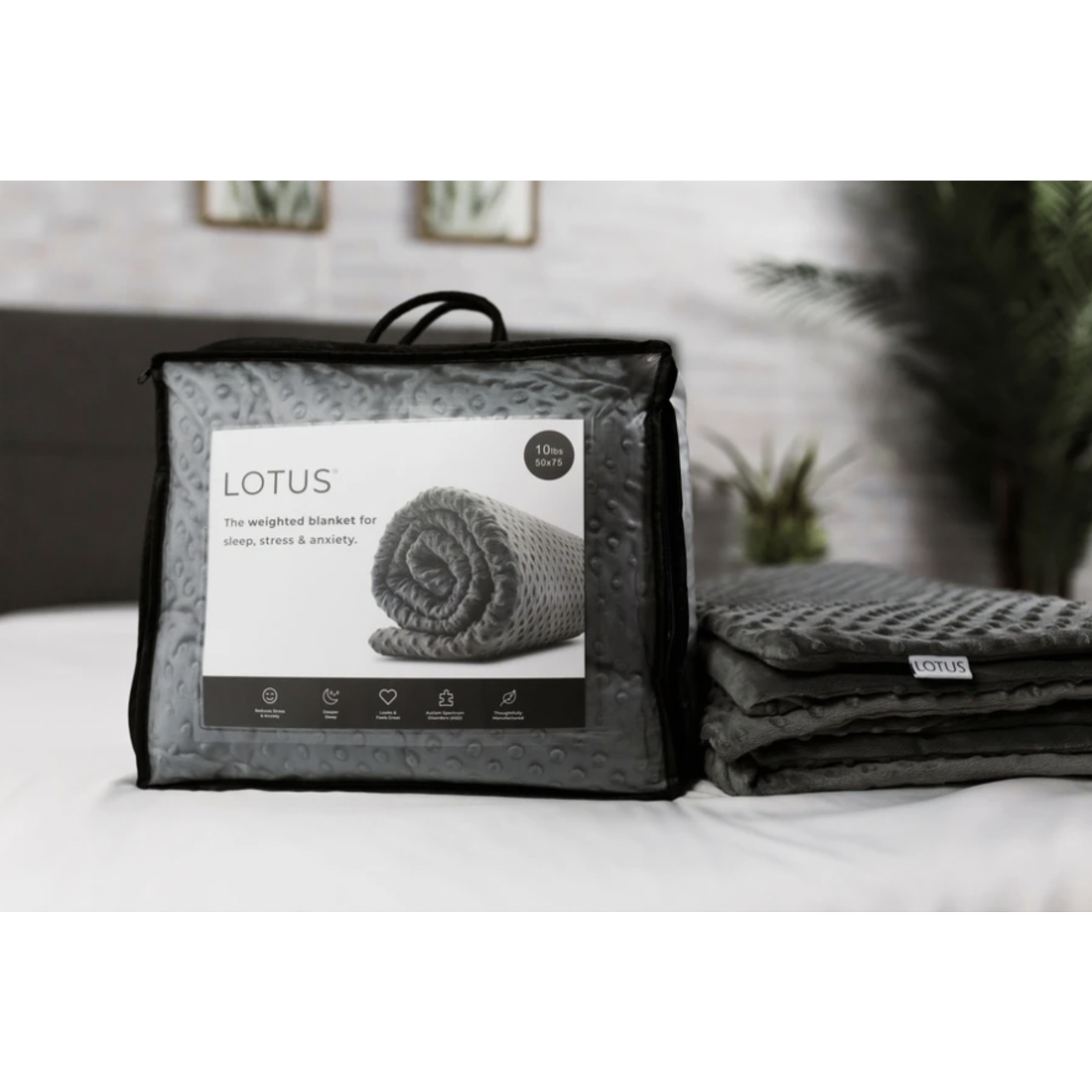 Unwind faster and sleep deeper with the calming comfort of a weighted blanket. The Lotus Weighted Blanket provides gentle, even pressure that helps you feel grounded, perfect for winding down at night, lounging on the couch, or creating a cozy sleep routine.