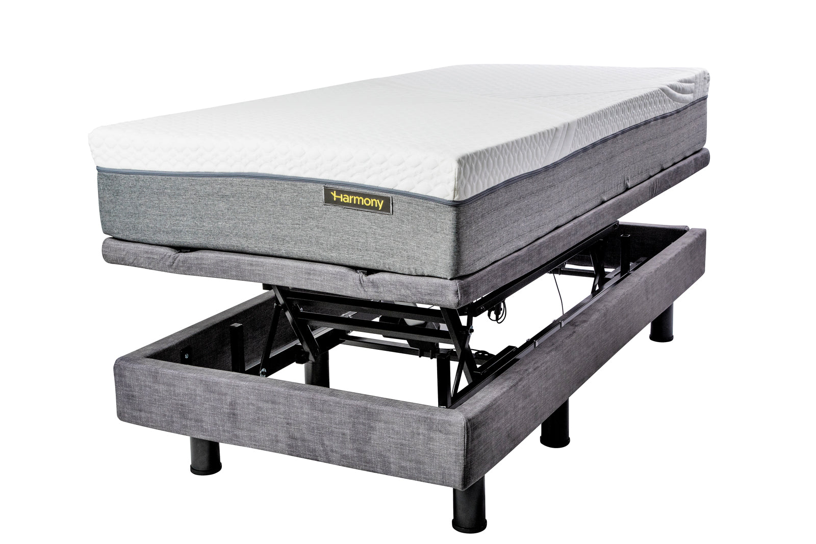 Harmony Hi-Low Adjustable Bed is available in Twin XL, Double, and Queen sizes.
