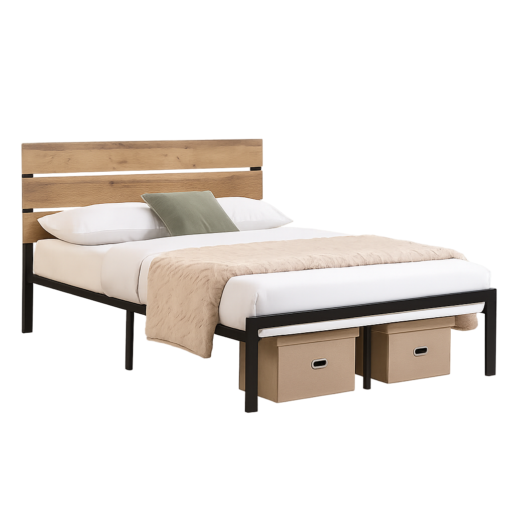 With its wood-meets-metal construction, the Rustic Platform Bed brings function and edge to your bedroom, delivering strength, simplicity, and built-in support from the ground up.
