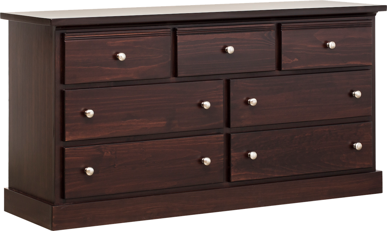This expansive dresser, multiple stain option, showcases a sleek profile that harmonizes with any contemporary decor.