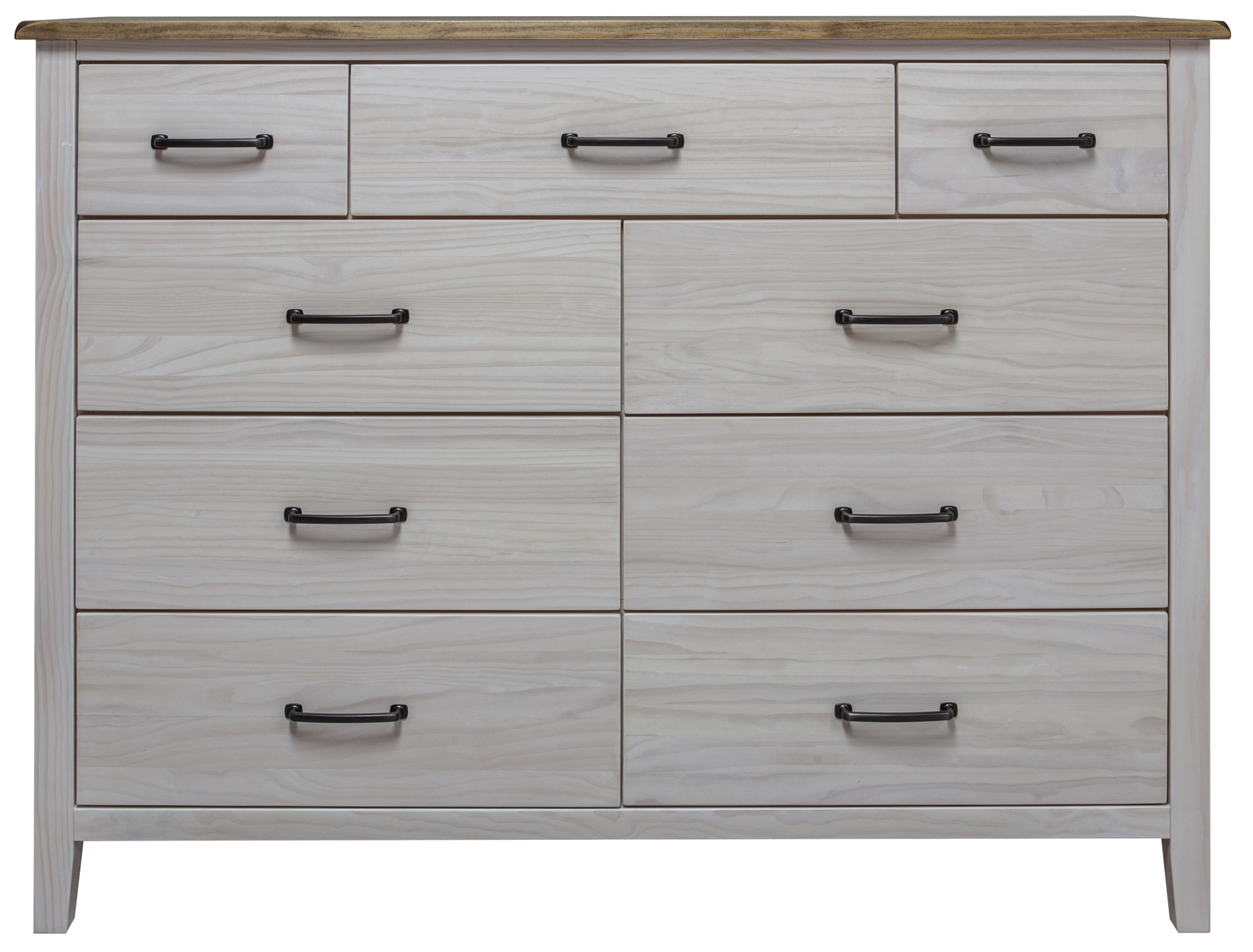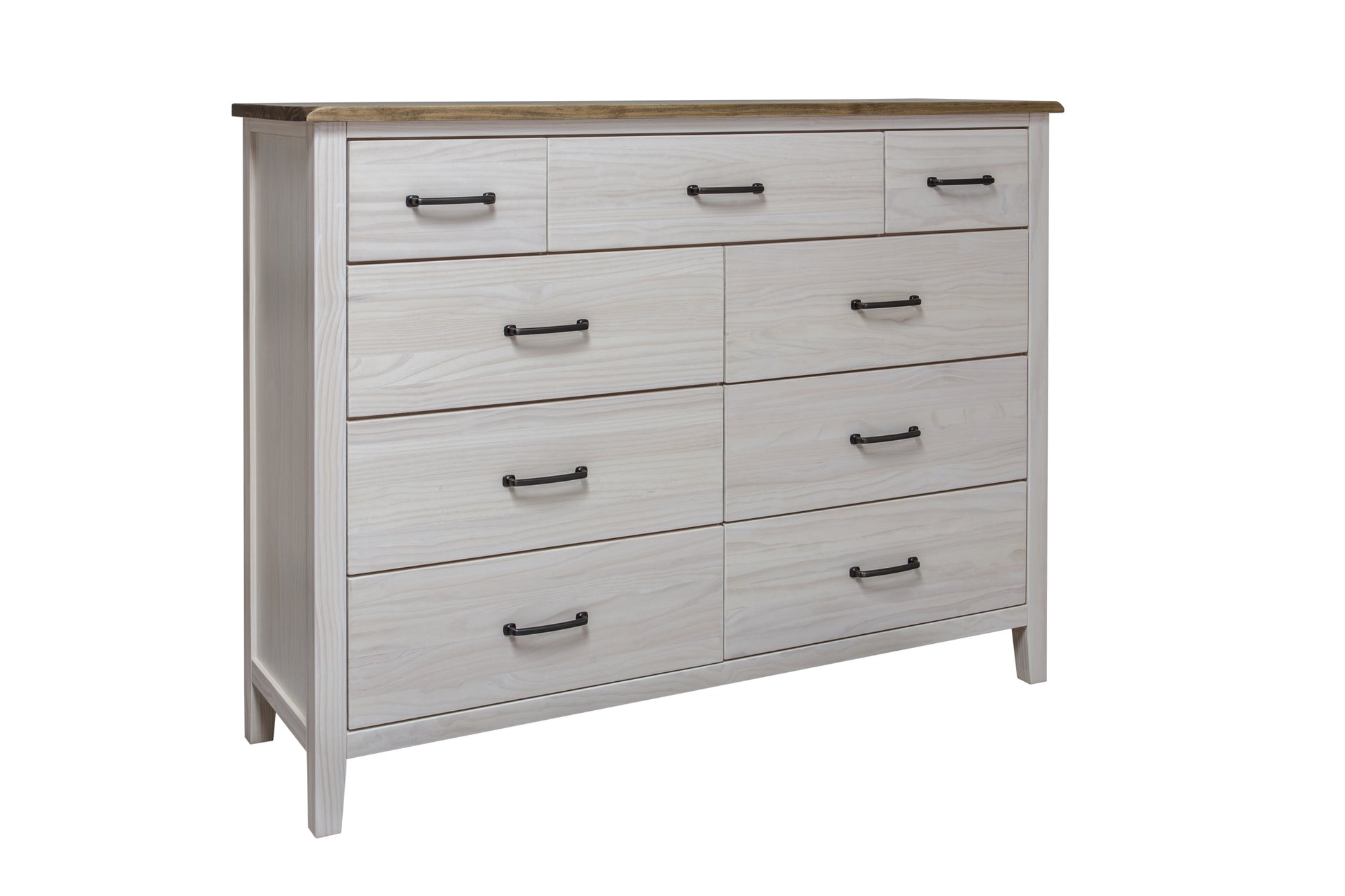 Immerse yourself in the modern elegance of the Mako Monkland 9-Drawer Dresser, designed to infuse your bedroom with a sophisticated storage solution.